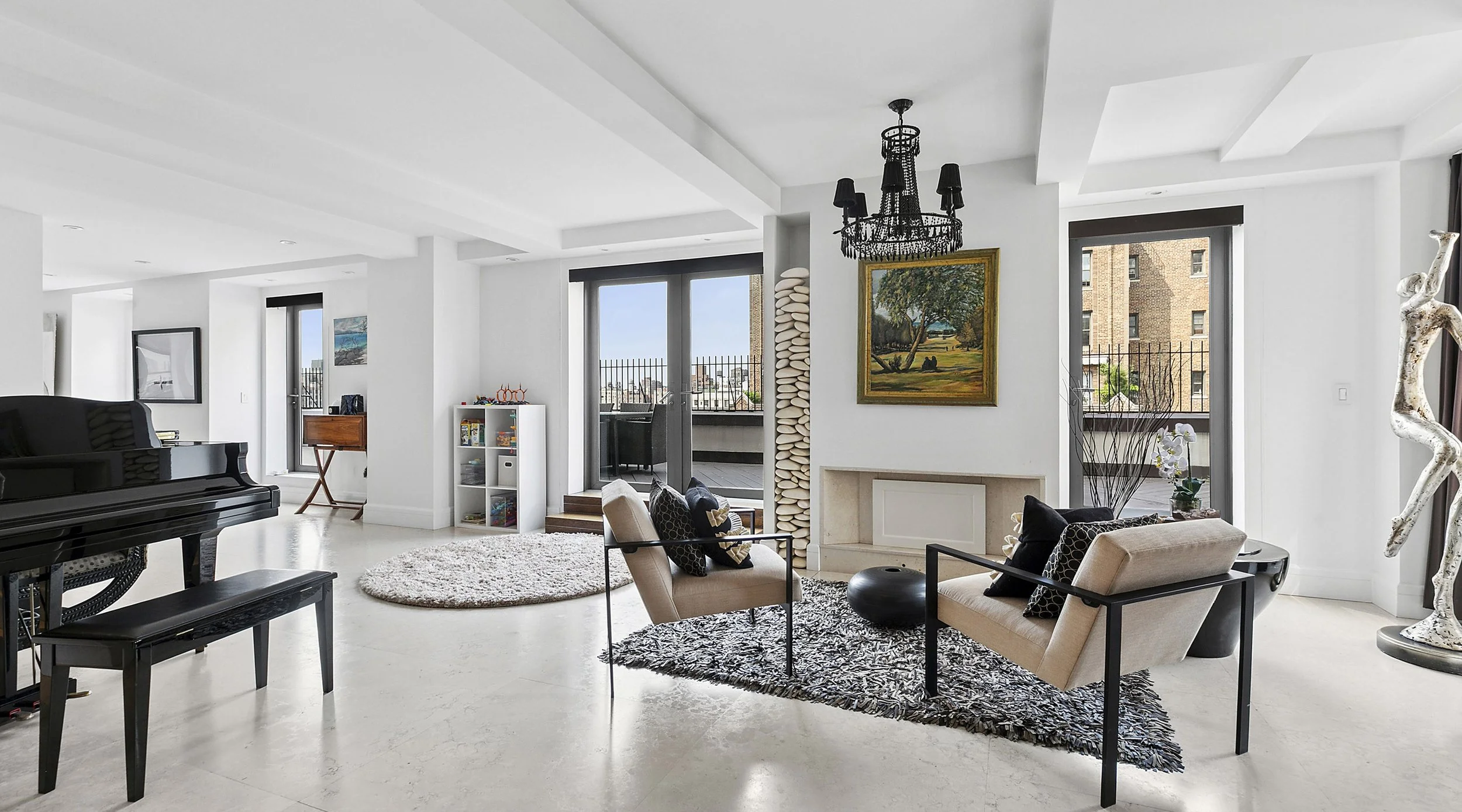 The Residences by Peter Marino is a collection of five one-of-a-kind homes and cultural spaces on the High Line in West Chelsea. This architecturally daring 11-story building showcases 60 unique finishes of stone, marble, and wood sourced from four continents. Residences feature soaring double-height ceilings, expansive glass panels, reinforced art walls, and private outdoor spaces, conceived as living works of art. Amenities include a custom Technogym fitness room and fully attended lobby, while Lehmann Maupin Gallery and the Hill Art Foundation anchor its cultural presence.